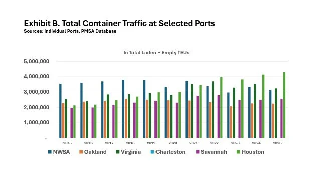 So who are the peer ports against which Oakland and NWSA should be measured? Arguably, their performance should be gauged against the other ports shown in Exhibit B.