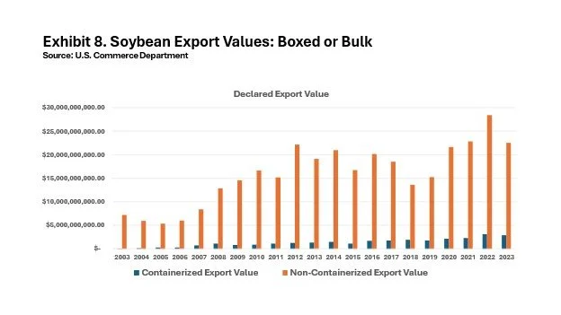 As Exhibit 6 reveals, what was once a 50% premium on the value of containerized soybean exports has sharply eroded over the years.