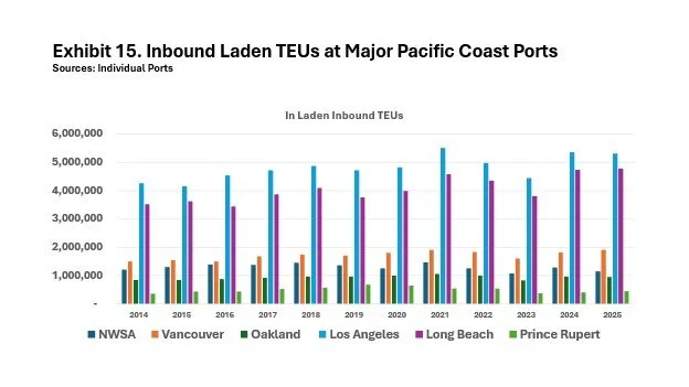 Container traffic through Halifax last year totaled 502,180 TEUs, down 1.4% from the preceding year. Inbound trade in CY 2025 amounted to 257,552 TEUs, a 2.9% fall-off from a year earlier. Outbound loads of 244,628 TEUs were up 0.3% year-over-year.